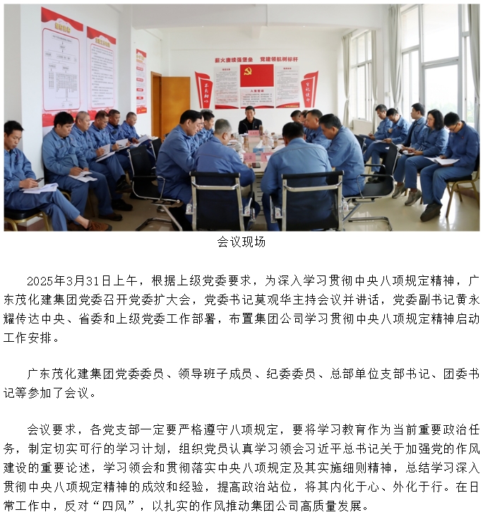 廣東茂化建集團(tuán)黨委召開(kāi)貫徹中央八項(xiàng)規(guī)定精神學(xué)習(xí)教育部署啟動(dòng)會(huì)