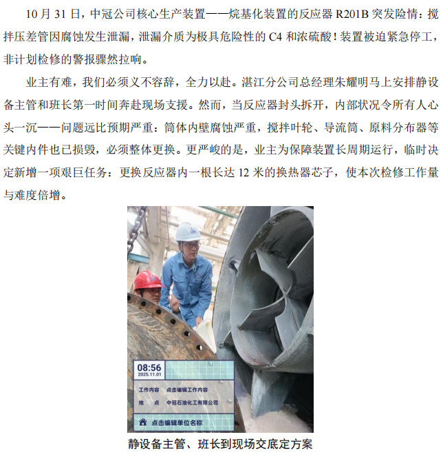 湛江分公司中冠項目部搶修烷基化反應(yīng)器紀(jì)實