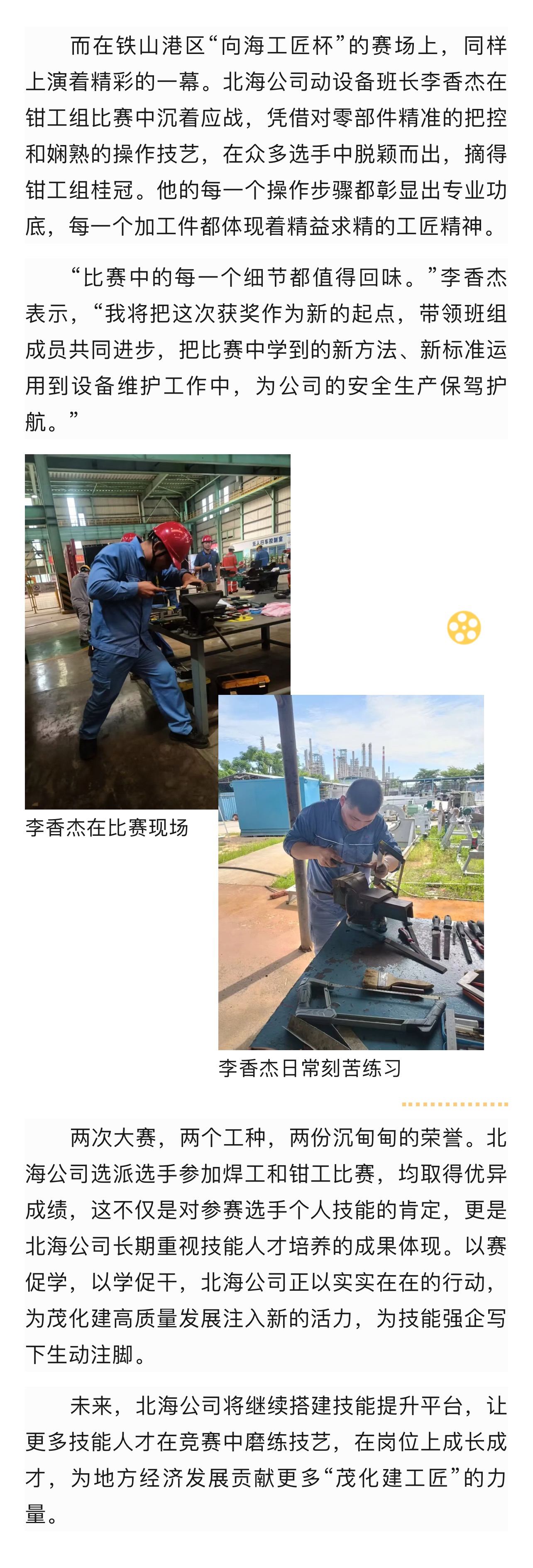 北海公司技能賽場捷報頻傳,勇奪焊工、鉗工雙項桂冠